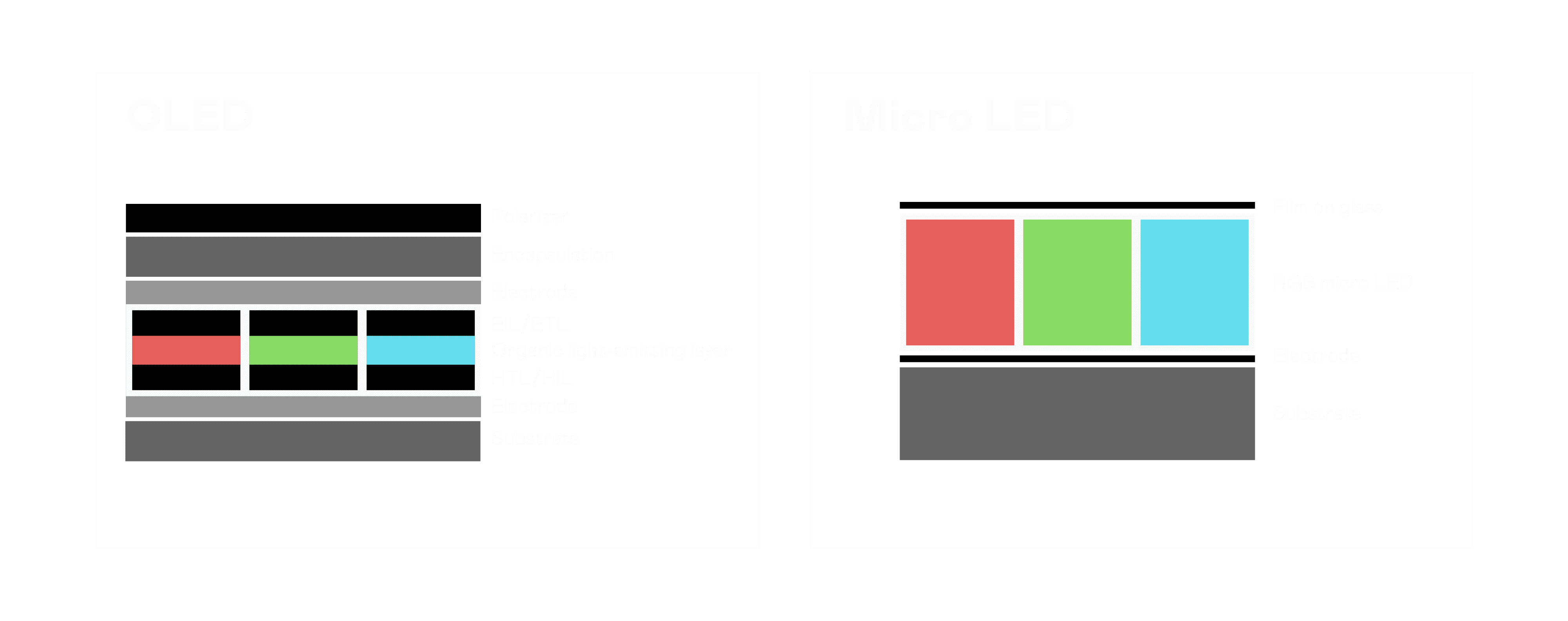 以 LED 做为显示画素,,,,可让 LED 的发光效率发挥到极致,,,从而让显示器具备优异的亮度表现,,,,不论是在户外或室内,,均具备出众的显示效果。。。。同时,,与使用有机材料的 OLED 相比,,,LED 具备更稳定、、、、寿命更长的特性,,,不仅不会有画面烙印问题,,而且更不容易出现故障、、、、坏点。。。