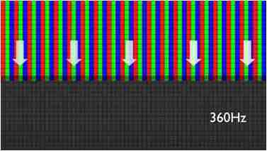 传统液晶驱动是从左到右单向进行,,在画面更新速度愈来越愈快的情况下,,位于驱动线路末端的右下角区域,,画素的闸极来不及在短时间内获得足够电压,,无法显示出正确的颜色资讯。。。。