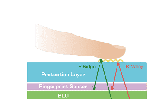 TFT 指纹扫描感测技术利用薄膜电晶体 (TFT) 当作光感测元件,,藉由非晶硅 (a-Si) 与低温多晶硅(LTPS)既有光电转换特性对不同波段光源进行吸收,,,使感测 IC 读取阵列感测元件的光漏电差异,,转换成数位灰阶影像。。。。